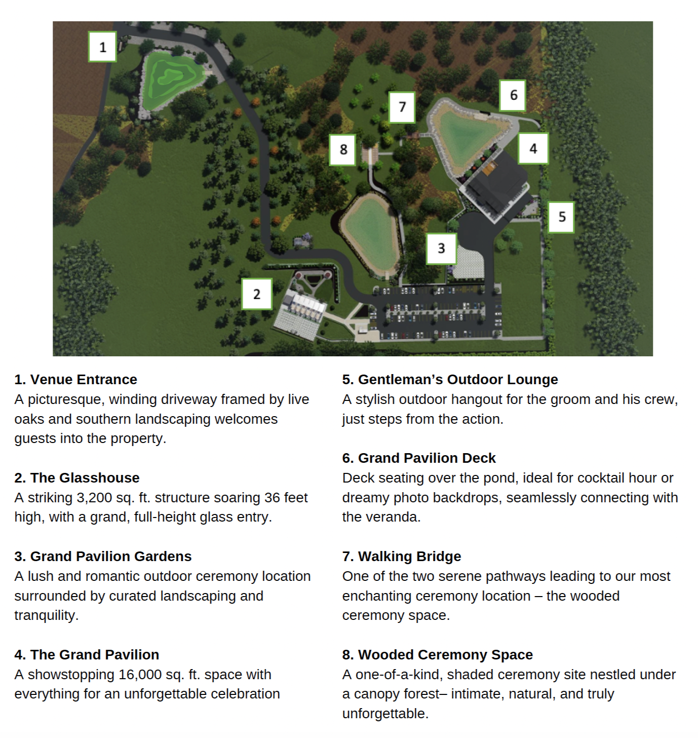 As you turn into the grand driveway, you’ll be greeted by graceful Live Oaks guiding the way to our elegant gates. Beyond them, a breathtaking 22-acre estate unfolds — a landscape where Southern charm meets French romance.